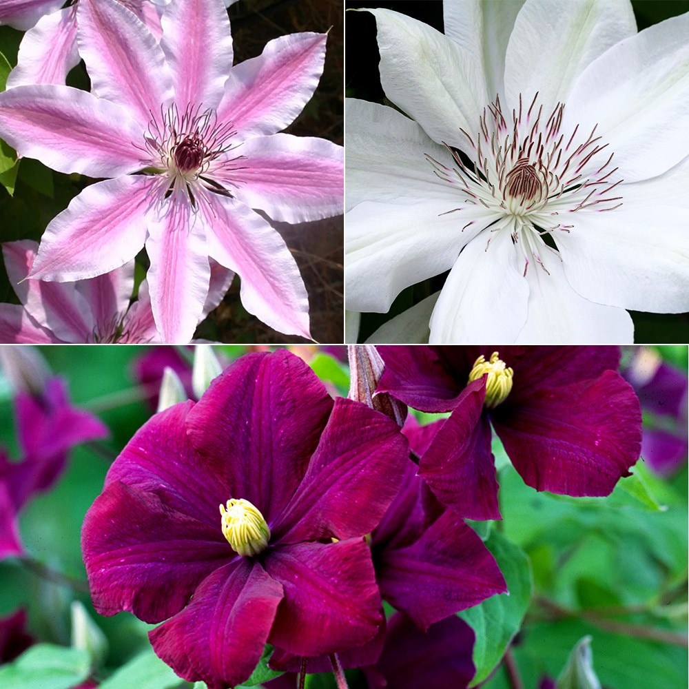 Bring award-winning beauty to your garden with this Summer Flowering Clematis Collection—a trio of spectacular, high-performing, and potentially repeat-flowering cultivars that will transform walls, trellises, and arches with months of colour.
